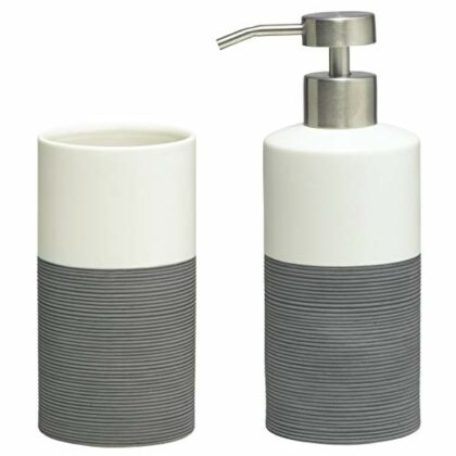 Sealskin Doppio Set conjunto Vaso y Dispensador de Jabón, Porcelana, Gris