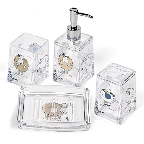 Tatkraft Acryl Funny Sheep Conjunto de 4 Accessorios de Baño: Jabonera, Dispensador de Jabon, Vaso higiene Dental y Vaso para cepillos Dientes