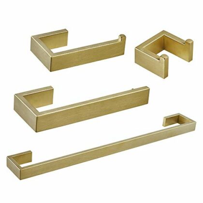 • BESY – Juego de accesorios de baño (4 piezas, montaje en pared, acero inoxidable/dorado cepillado