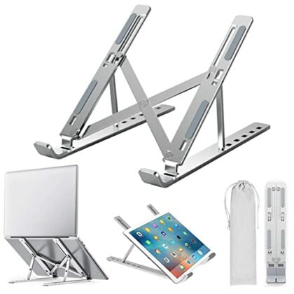 EasyULT Soporte para Ordenador Portátil, Laptop Stand Aluminio Ventilado Plegable, Ergonomic Ajustables Soporte Portátil para 10-15.6” Notebook/MacBook Pro/MacBook Air Laptop – Plata
